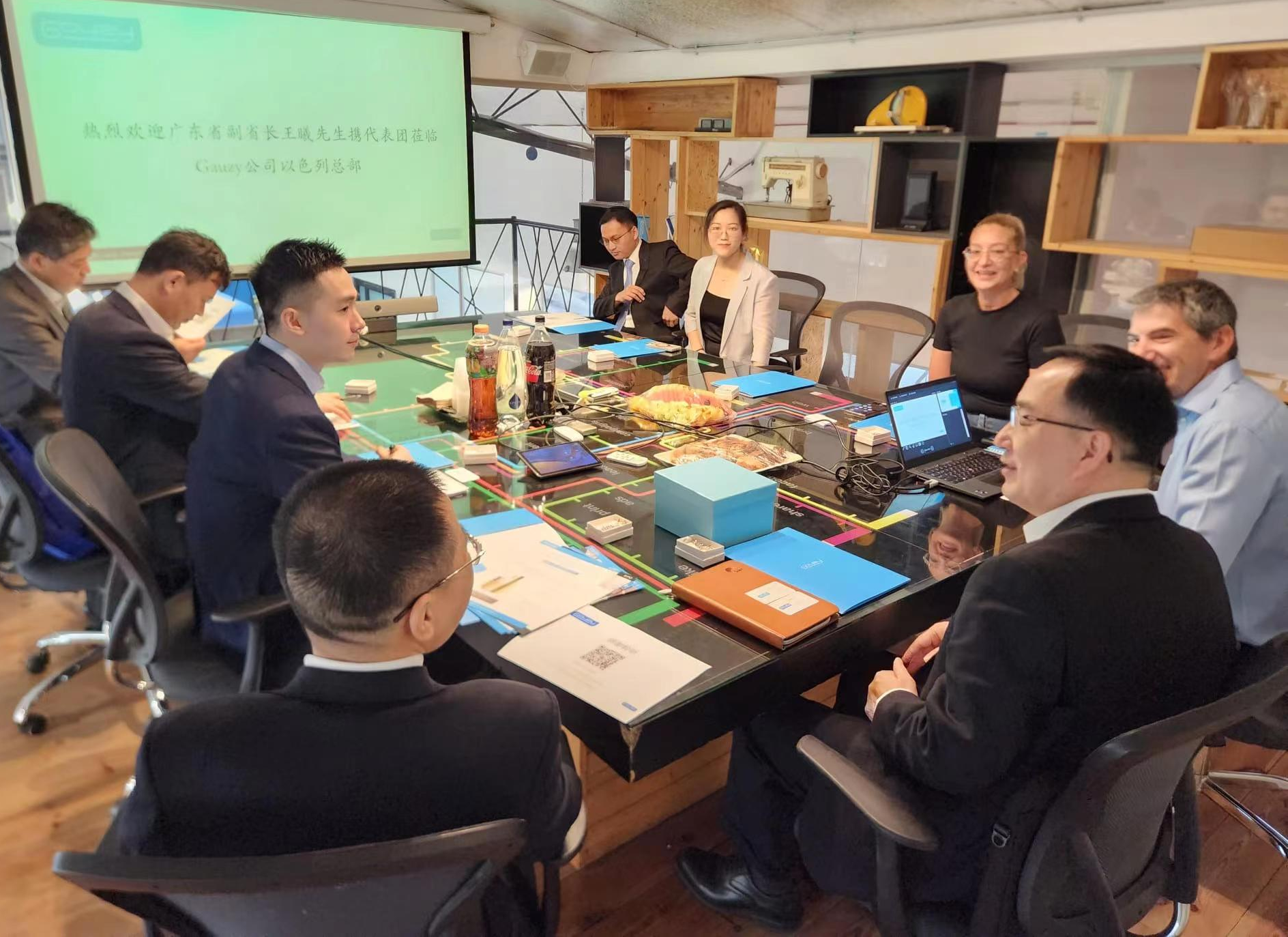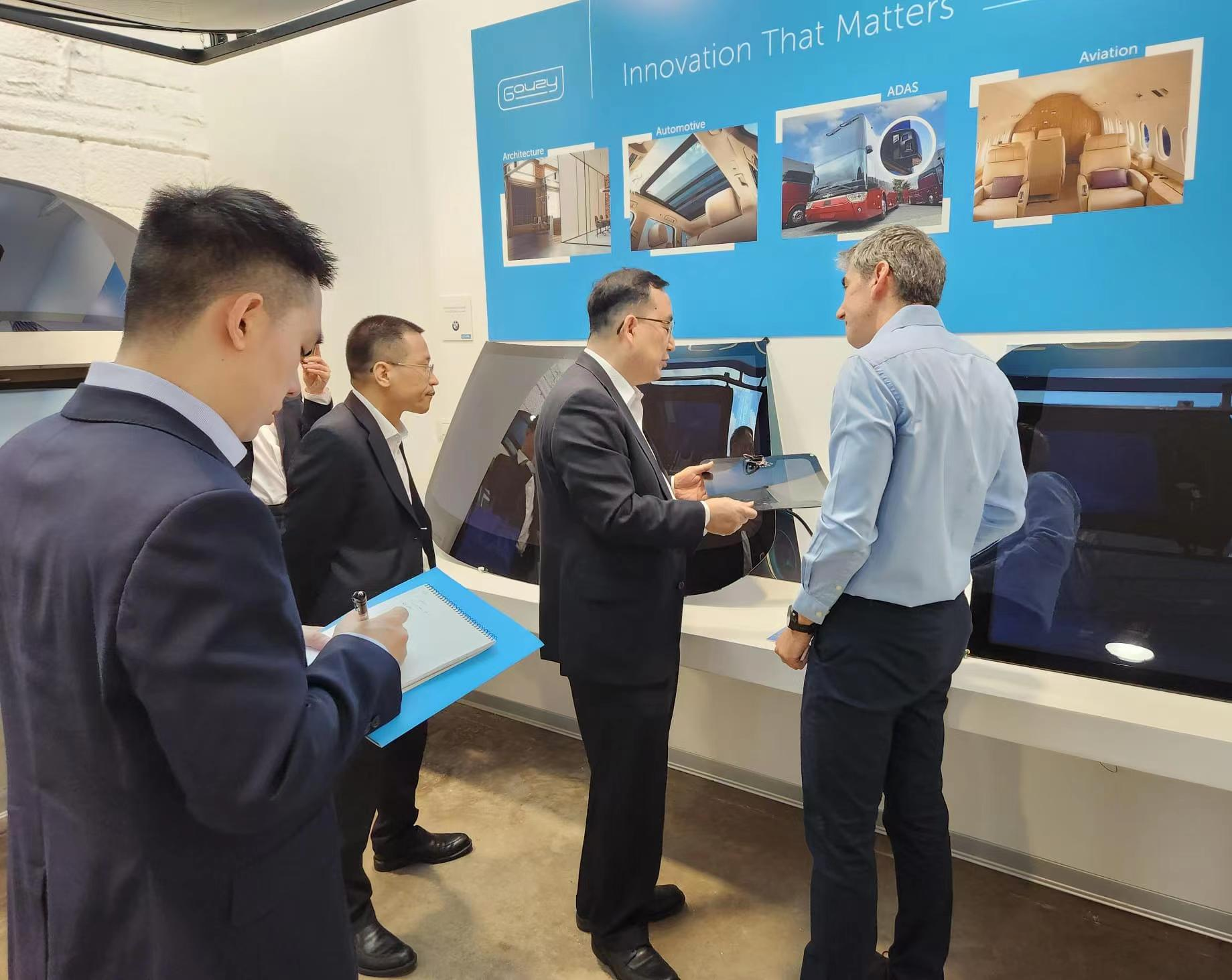 6月27日,以色列当地时间上午,广东省副省长王曦、广东省科学技术厅厅长龚国平一行8人到Gauzy Ltd.集团总部进行调研、交流,这是继2018年时任广东省省长马兴瑞调研Gauzy广州办事处、2019年时任上海市市长应勇调研Gauzy上海办事处后,省部级再对以色列黑科技企业Gauzy的调研交流。王曦一行与Gauzy就其研发的视觉技术和调光技术先进材料开展交流。
