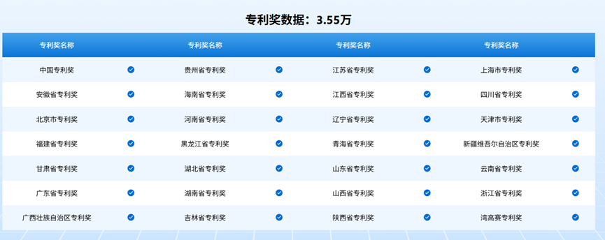 海知汇产品研发团队已将历届中国专利奖全部获奖专利、26个省市区专利奖的获奖专利、湾高赛获奖共计3万5千多件专利作深加工标引入库,您可以随时查找分析相关情况。