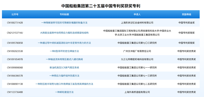 想知道中国船舶集团国家专利奖获奖专利?最新的,历届的,海知汇都能帮您